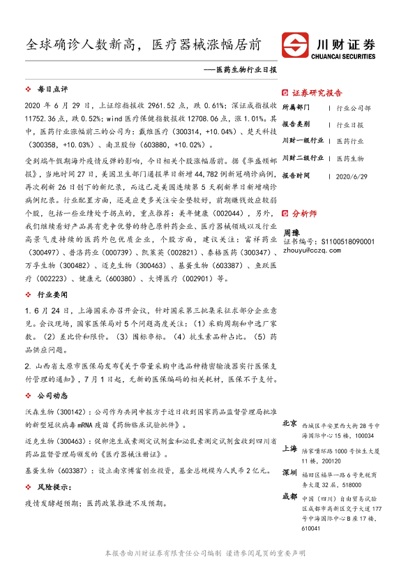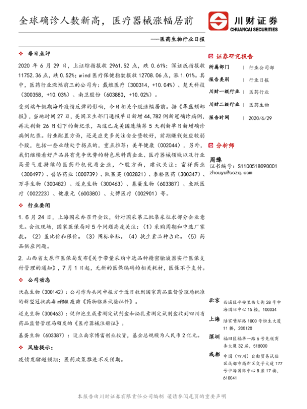 【川财证券】【20200629】全球确诊人数新高,医疗器械涨幅居前-3页