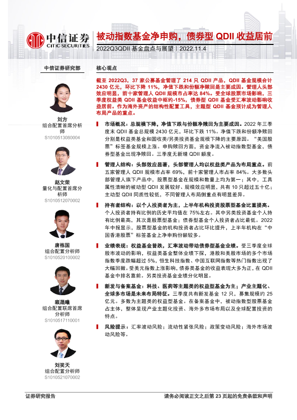 【中信证券】【20221104】2022Q3QDII基金盘点与展望:被动指数基金净申购,债券型QDII收益居前-24页