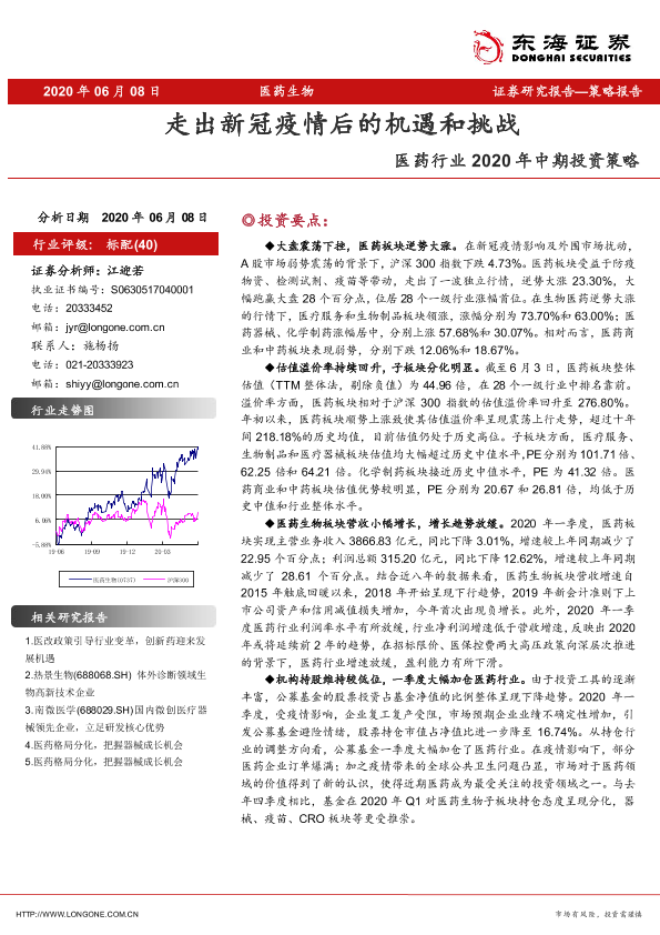 【东海证券】【20200608】医药行业2020年中期投资策略:走出新冠疫情后的机遇和挑战-17页