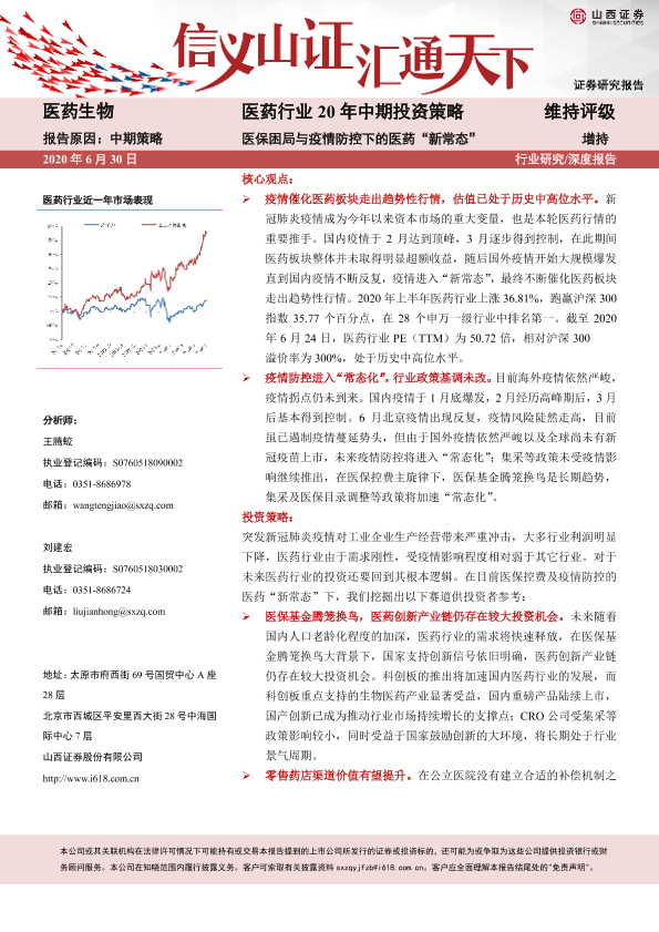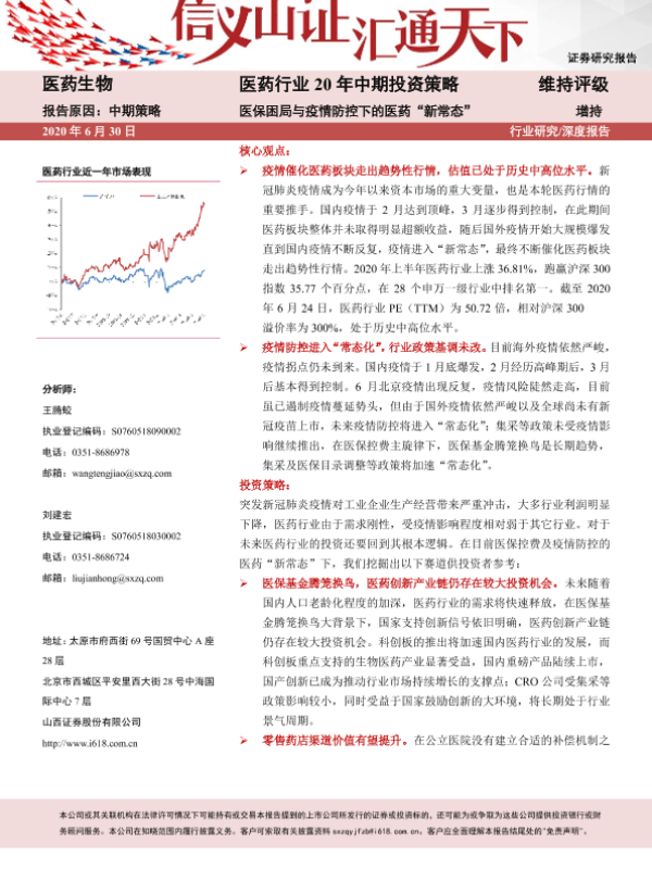 【山西证券】【20200630】医药行业20年中期投资策略:医保困局与疫情防控下的医药“新常态”-32页