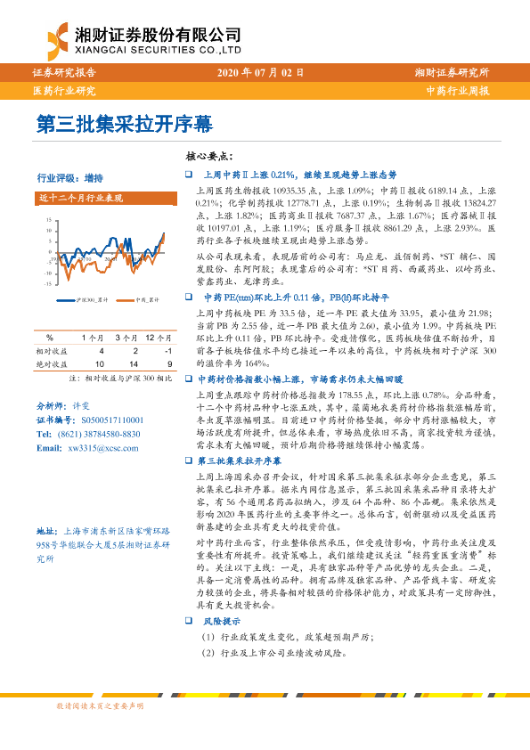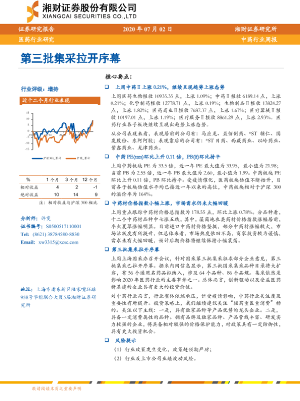 【湘财证券】【20200702】中药行业周报:第三批集采拉开序幕-11页