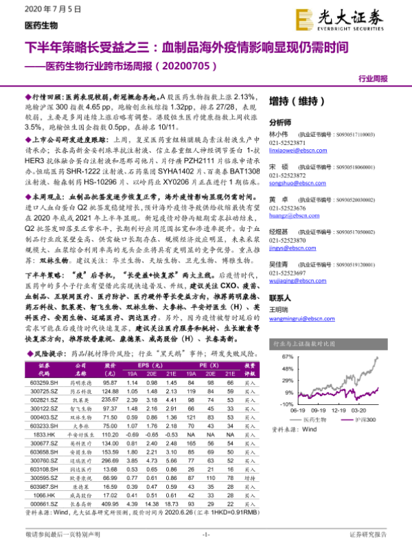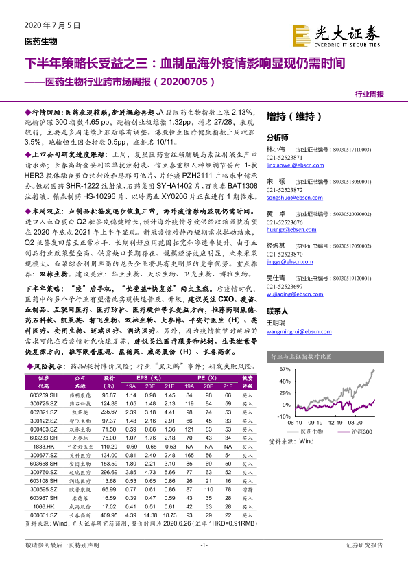 【光大证券】【20200705】下半年策略长受益之三:血制品海外疫情影响显现仍需时间-33页