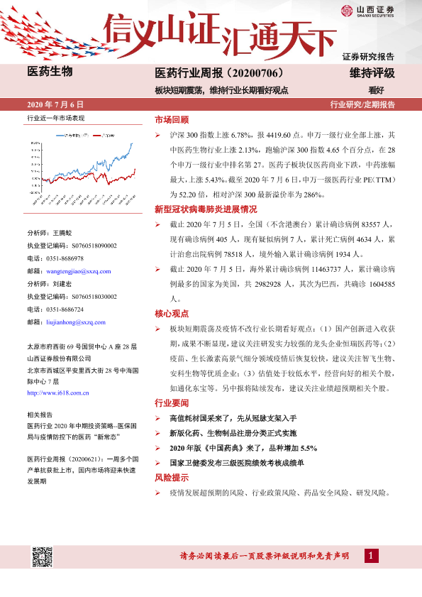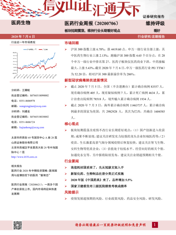 【山西证券】【20200706】医药行业周报:板块短期震荡,维持行业长期看好观点-9页
