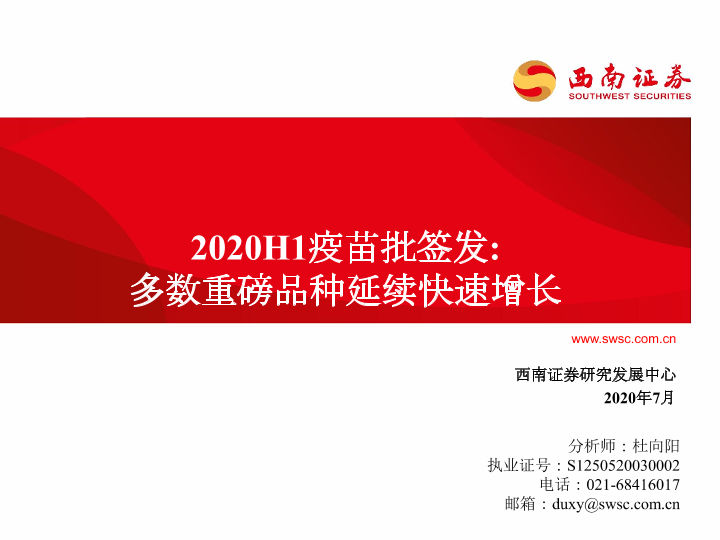 【西南证券】【202007】2020年上半年疫苗批签发:多数重磅品种延续快速增长-61页