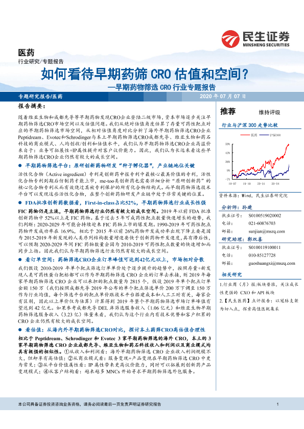 【民生证券】【20200707】如何看待早期药筛CRO估值和空间-22页
