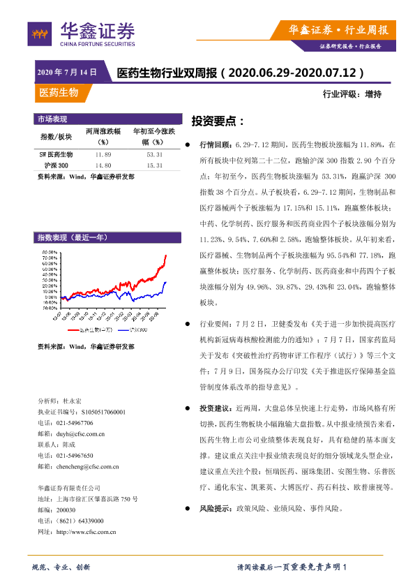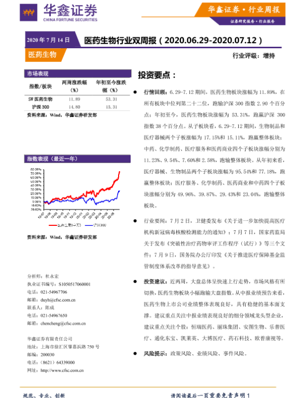 【华鑫证券】【20200714】医药生物行业双周报-10页