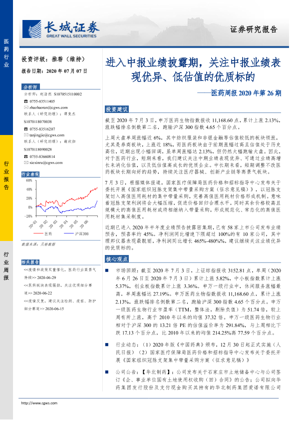 中报业绩 优质标的 低估值 医药周报 医药行业