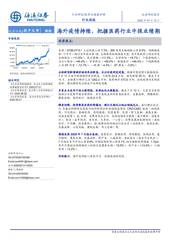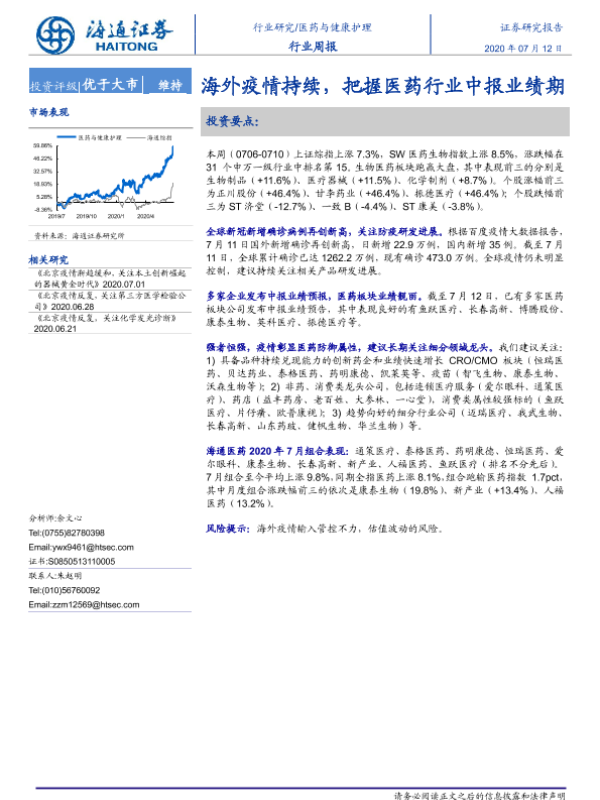 【海通证券】【20200712】海外疫情持续,把握医药行业中报业绩期-5页