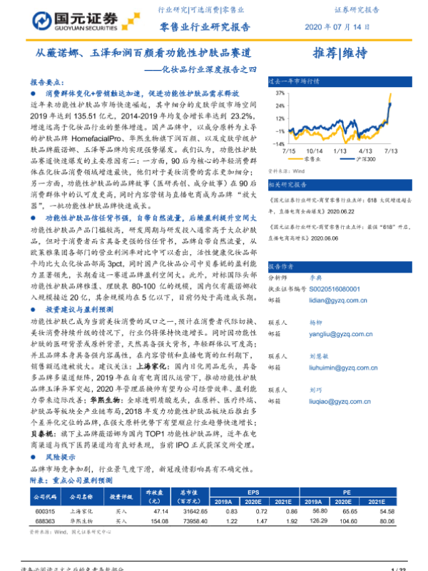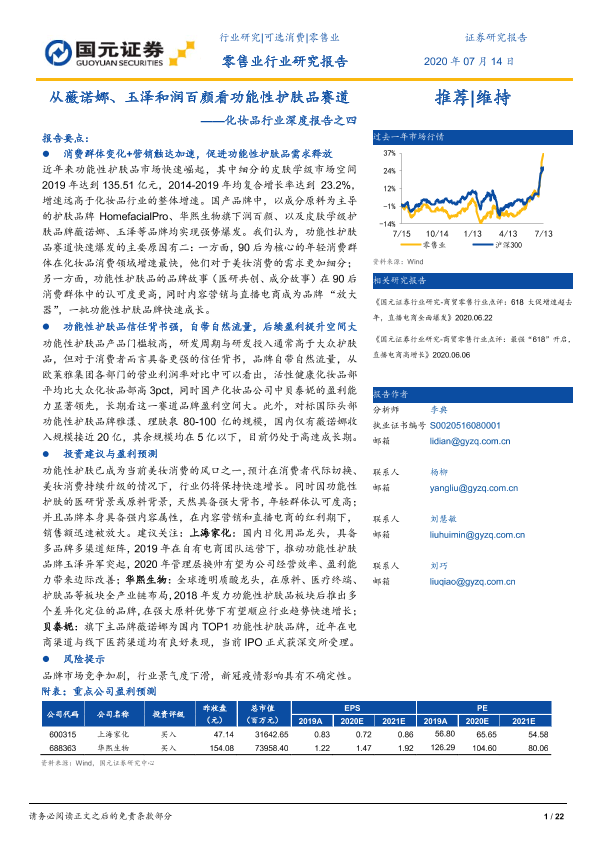 【国元证券】【20200714】从薇诺娜、玉泽和润百颜看功能性护肤品赛道-22页