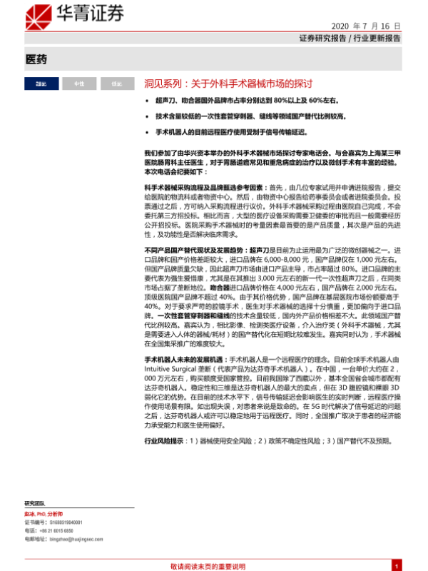 【华兴证券】【20200716】医药洞见系列:关于外科手术器械市场的探讨-2页