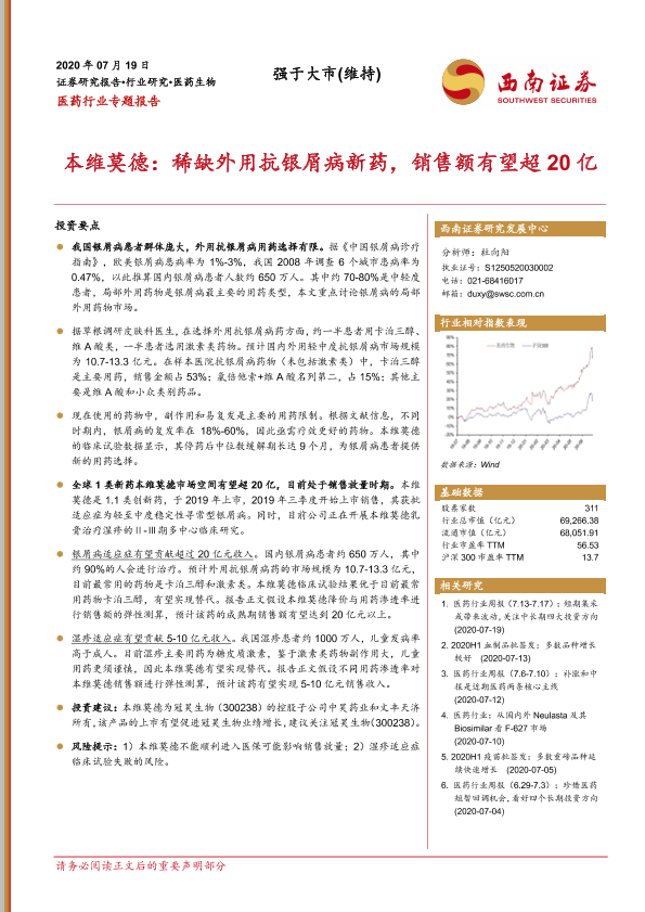 【西南证券】【20200719】本维莫德:稀缺外用抗银屑病新药,销售额有望超20亿-15页
