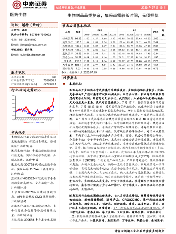【中泰证券】【20200719】医药生物行业周报:生物制品品类复杂,集采尚需较长时间,无须担忧-13页
