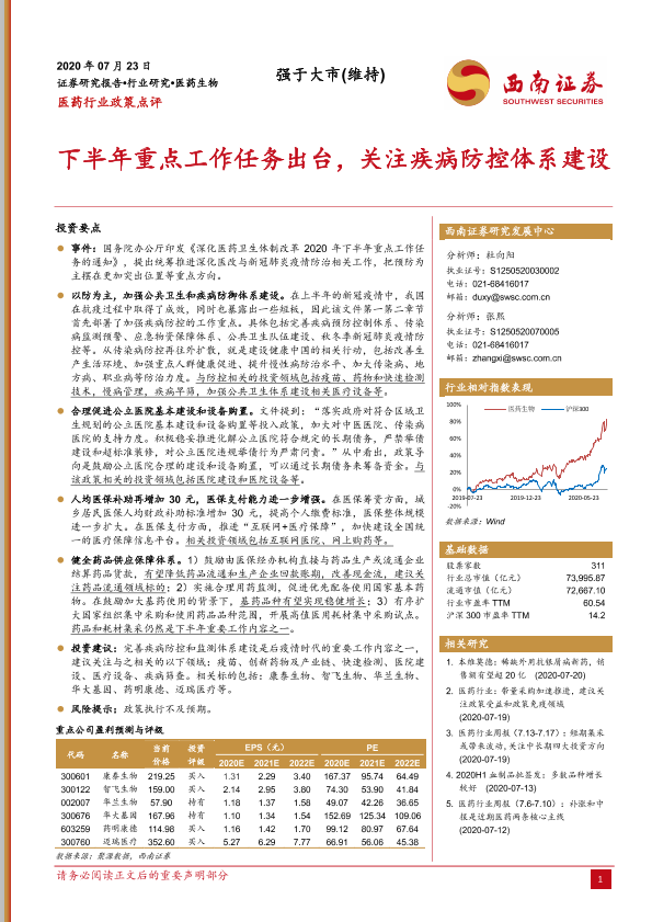 【西南证券】【20200723】医药行业政策点评:下半年重点工作任务出台,关注疾病防控体系建设-8页