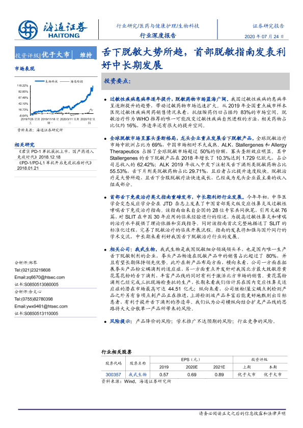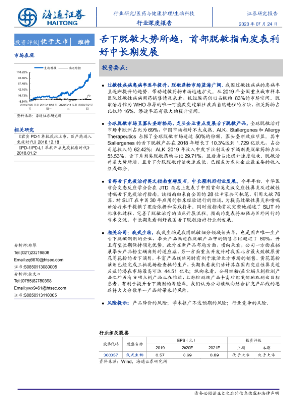 【海通证券】【20200724】生物科技行业深度报告:舌下脱敏大势所趋,首部脱敏指南发表利好中长期发展-24页