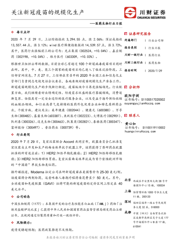 【川财证券】【20200729】关注新冠疫苗的规模化生产-3页