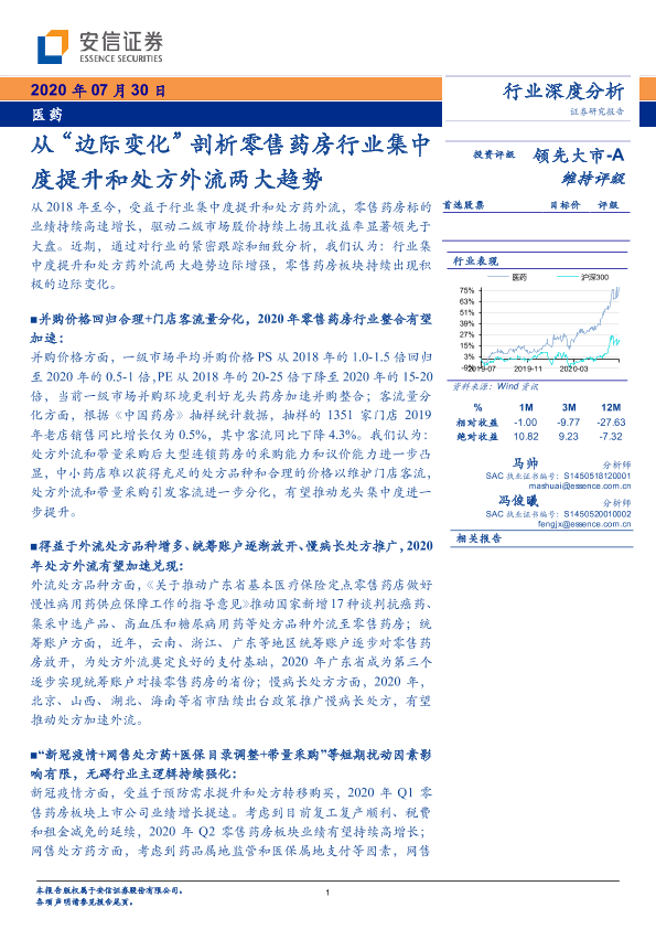 【安信证券】【20200730】从“边际变化”剖析零售药房行业集中度提升和处方外流两大趋势-20页