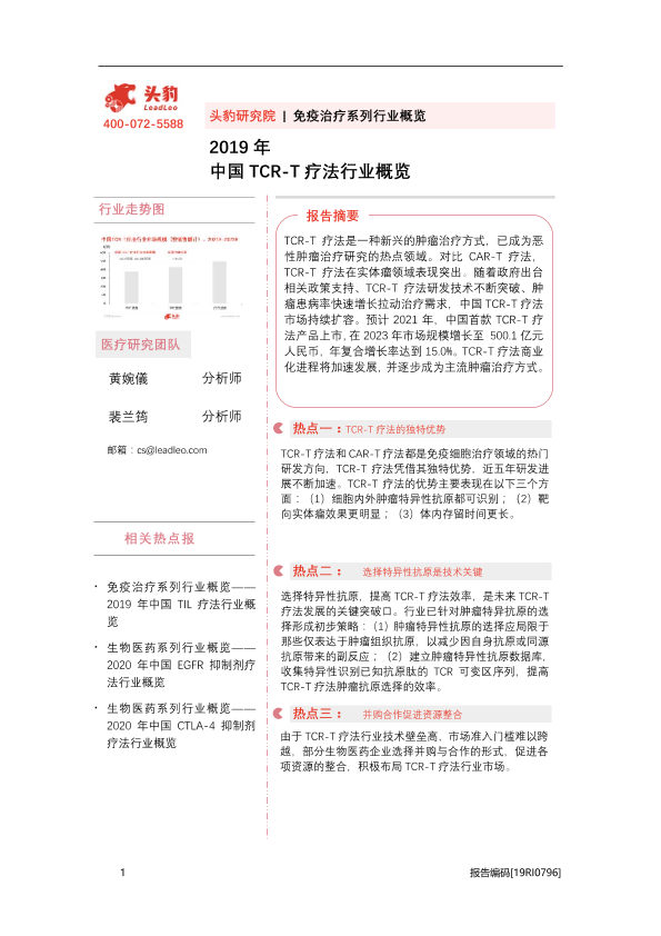 【头豹研究院】【2019】中国TCR-T疗法行业概览-34页
