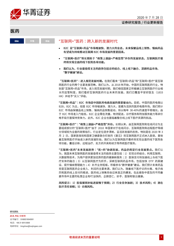 【华兴证券】【20200728】“互联网+”医药:跨入新的发展时代-53页