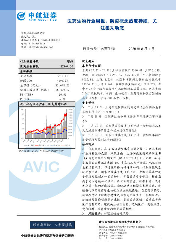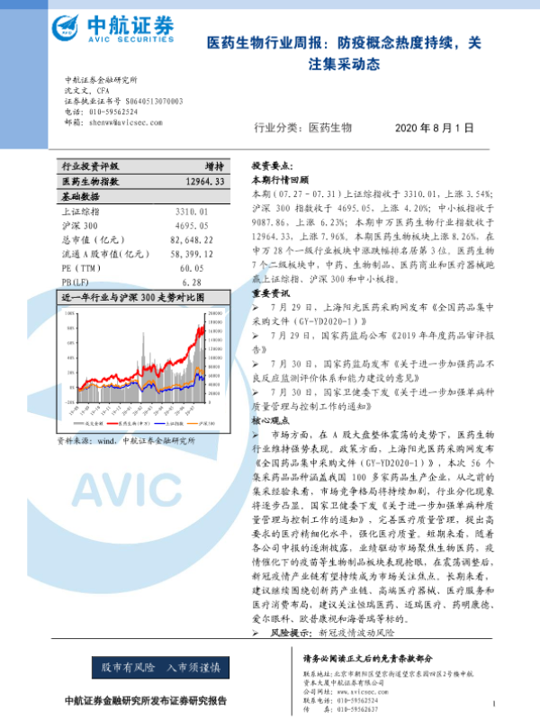 【中航证券】【20200801】医药生物行业周报:防疫概念热度持续,关注集采动态-10页