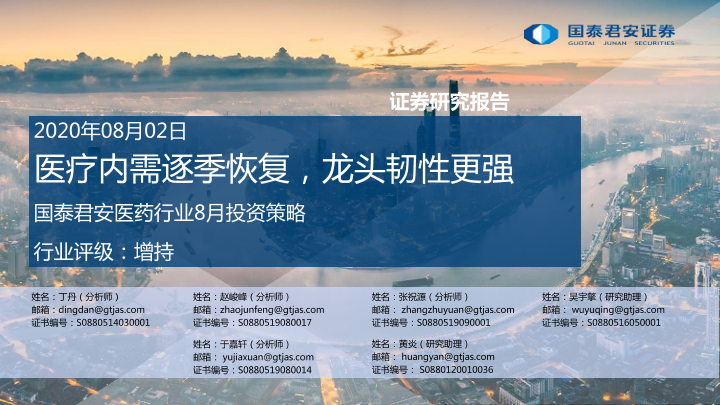 【国泰君安证券】【20200802】医药行业8月投资策略:医疗内需逐季恢复,龙头韧性更强-32页