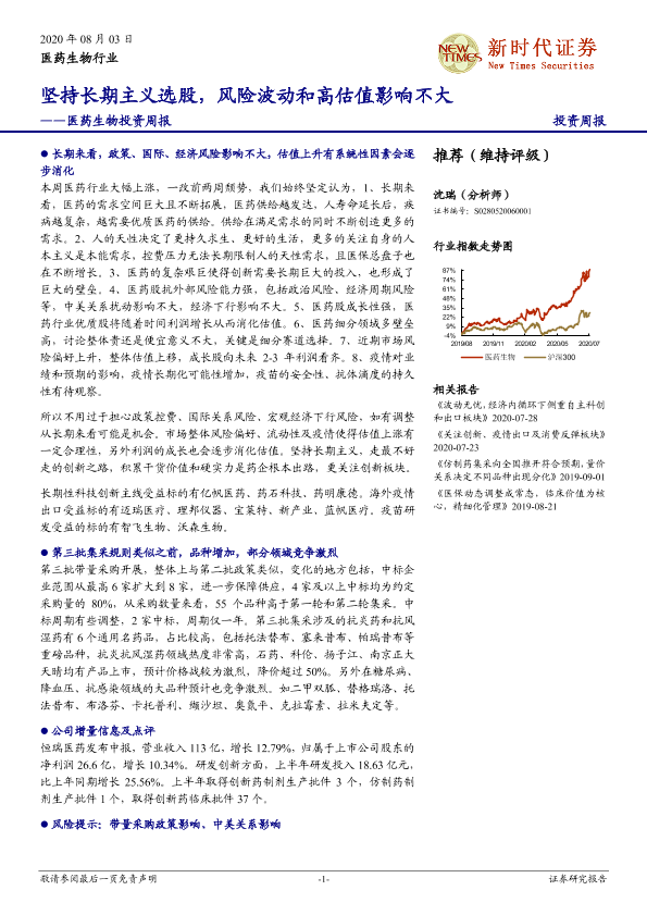 【新时代证券】【20200803】医药生物投资周报:坚持长期主义选股,风险波动和高估值影响不大-22页
