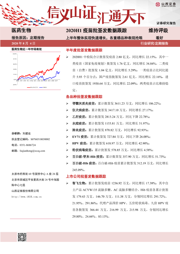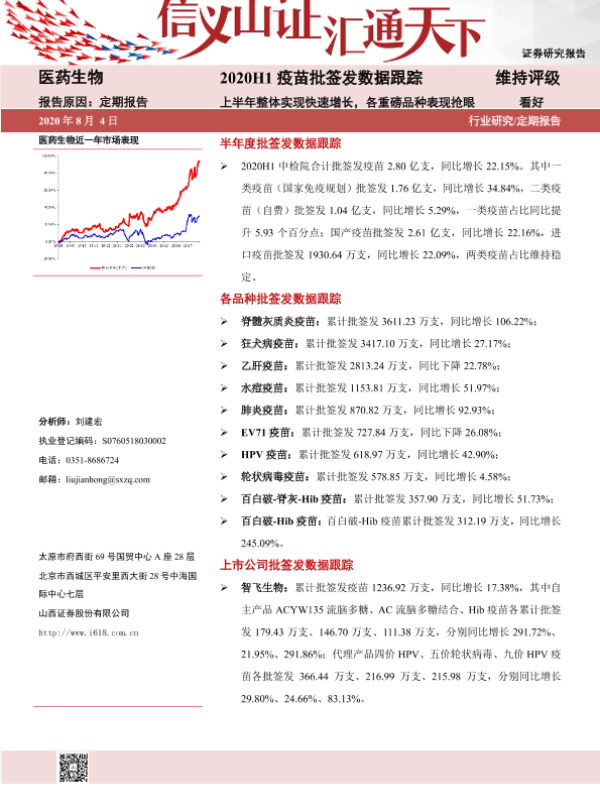 【山西证券】【20200804】2020H1疫苗批签发数据跟踪:上半年整体实现快速增长,各重磅品种表现抢眼-26页