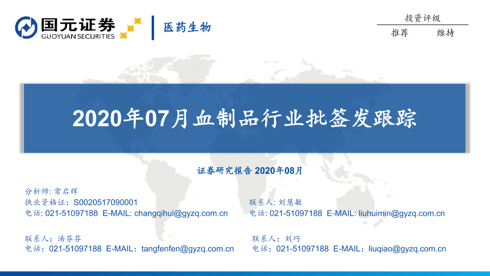 【国元证券】【202008】2020年07月血制品行业批签发跟踪-11页