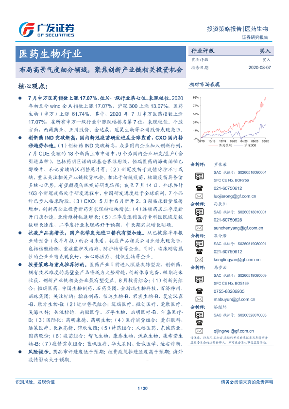 【广发证券】【20200807】医药生物行业:布局高景气度细分领域,聚焦创新产业链相关投资机会-30页