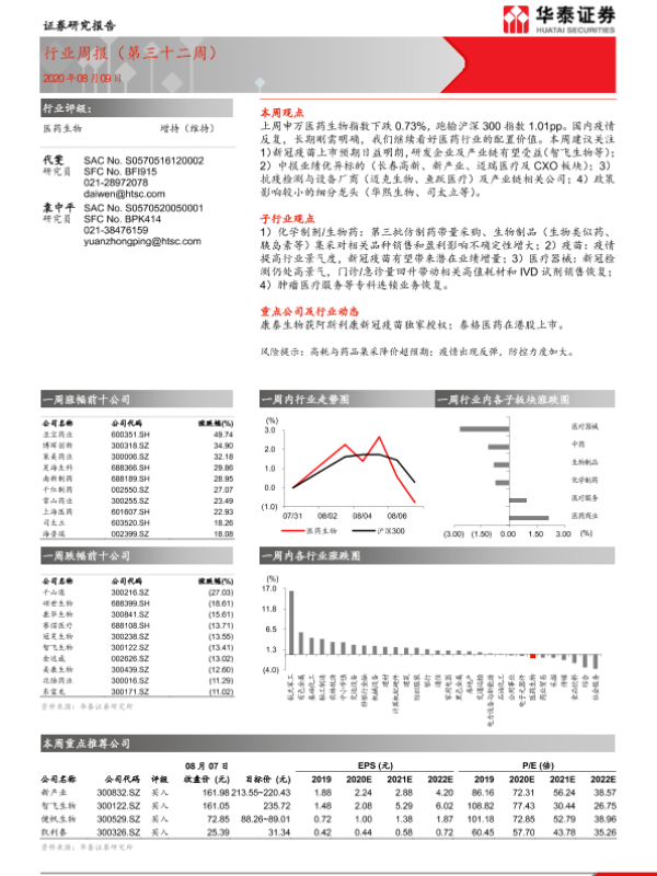 【华泰证券】【20200809】医药生物行业周报(第三十二周)-12页