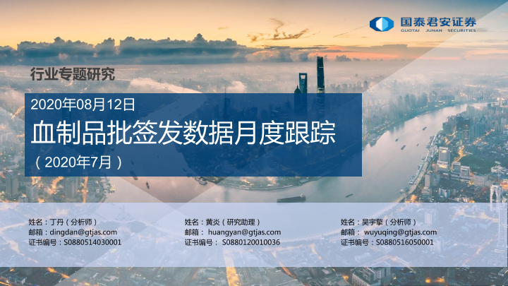 【国泰君安证券】【20200812】血制品批签发数据月度跟踪-33页
