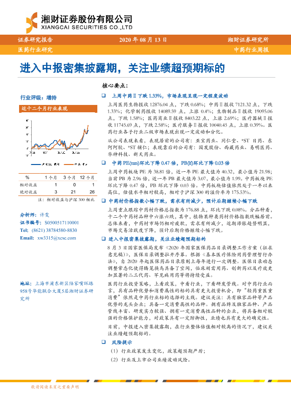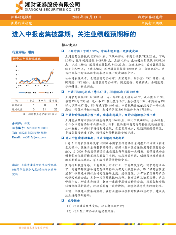 业绩超预期 中报披露 中药行业 估值分析 政策影响