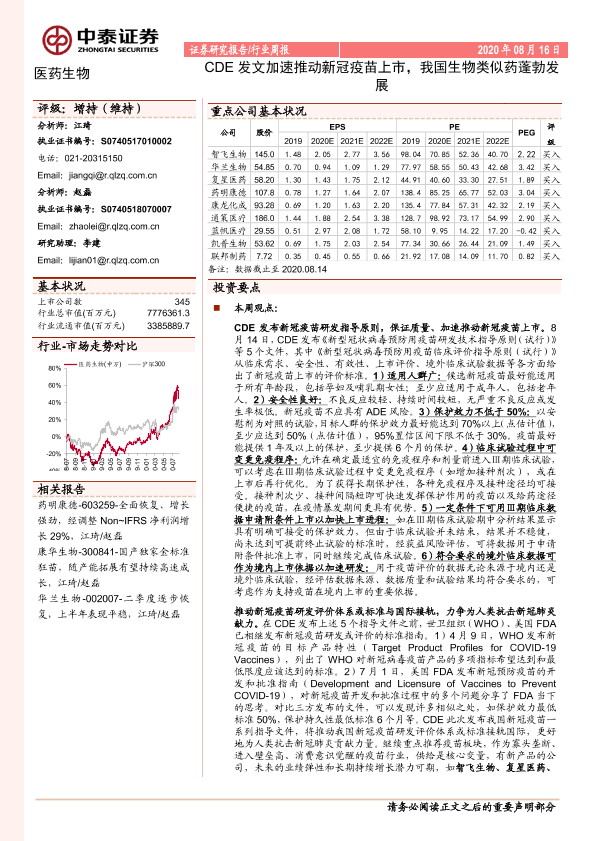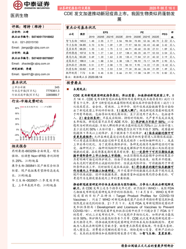 【中泰证券】【20200816】CDE发文加速推动新冠疫苗上市,我国生物类似药蓬勃发展-13页