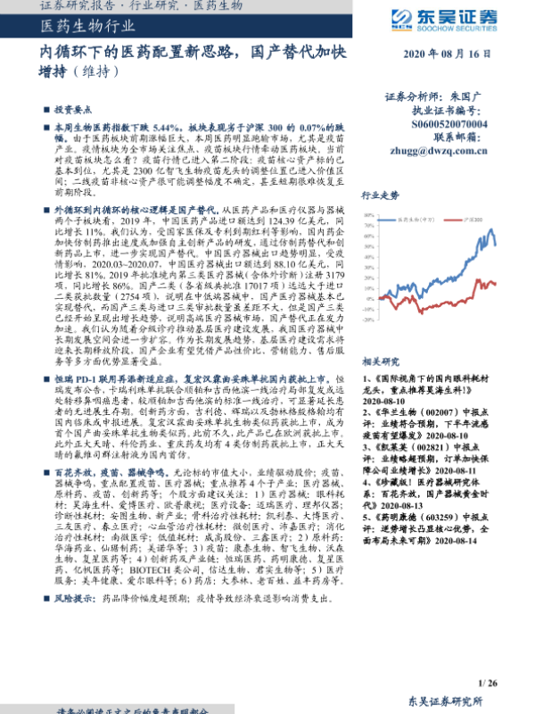 【东吴证券】【20200816】内循环下的医药配置新思路,国产替代加快-26页