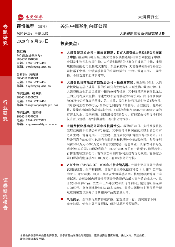 【东莞证券】【20200820】大消费新三板系列研究第5期:关注中报盈利向好公司-12页