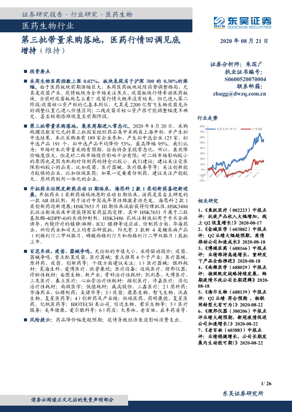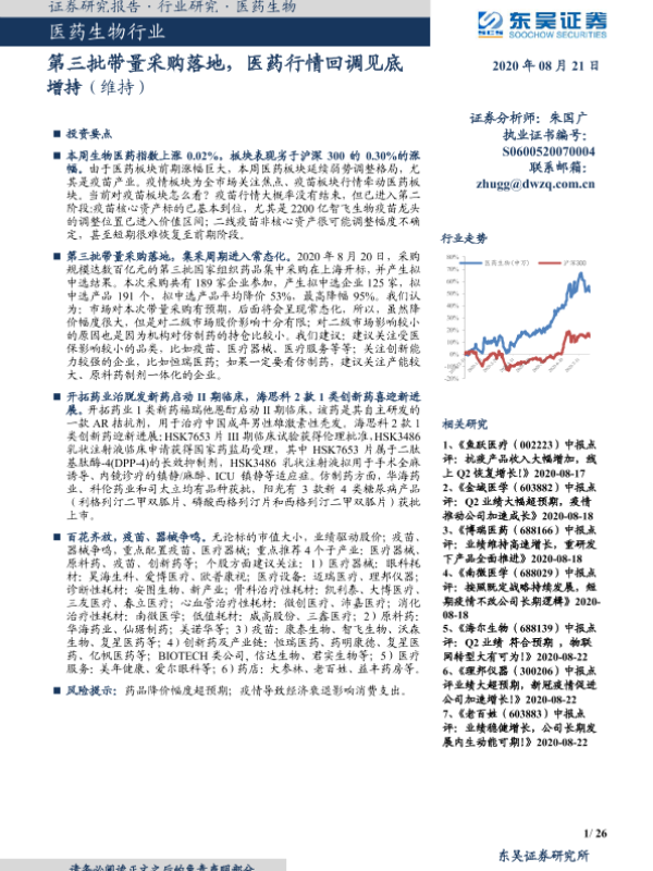 【东吴证券】【20200821】第三批带量采购落地,医药行情回调见底-26页