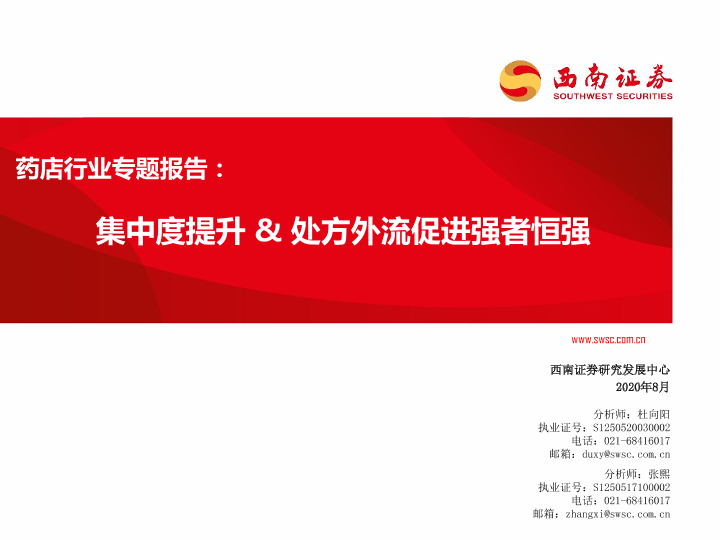 【西南证券】【202008】药店行业专题报告:集中度提升&处方外流促进强者恒强-100页