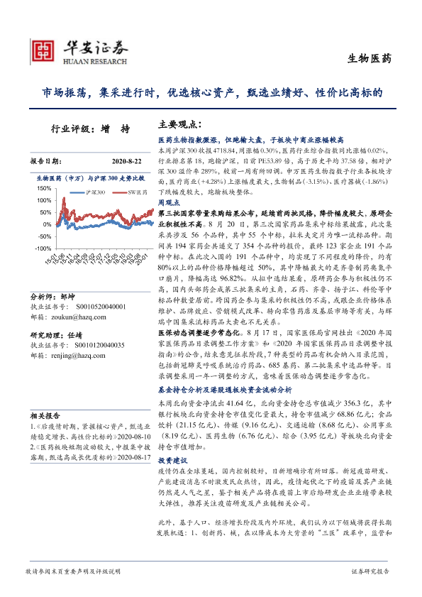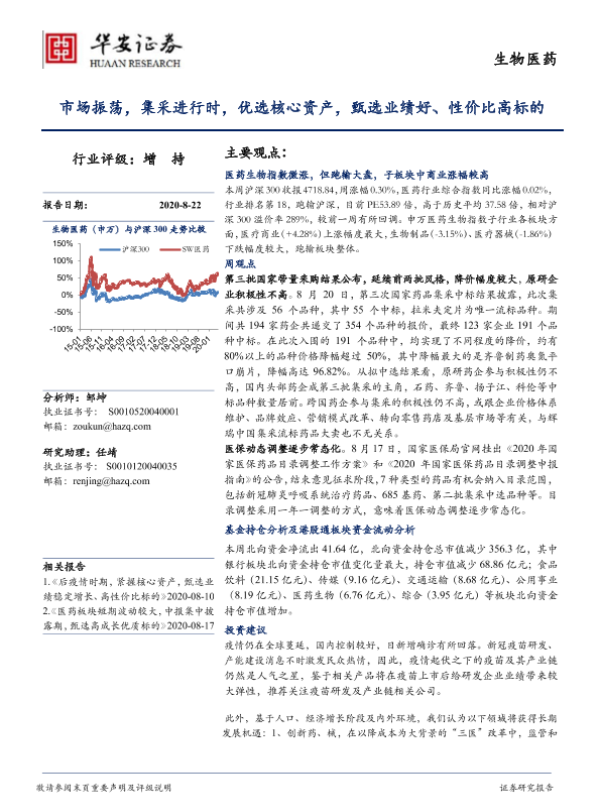 【华安证券】【20200822】生物医药:市场振荡,集采进行时,优选核心资产,甄选业绩好、性价比高标的-13页