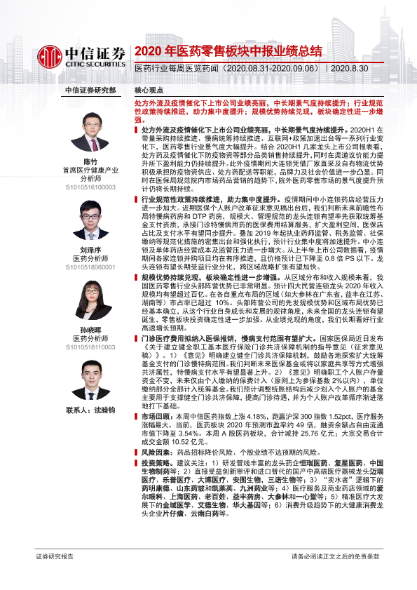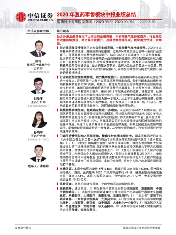 【中信证券】【20200830】2020年医药零售板块中报业绩总结-39页