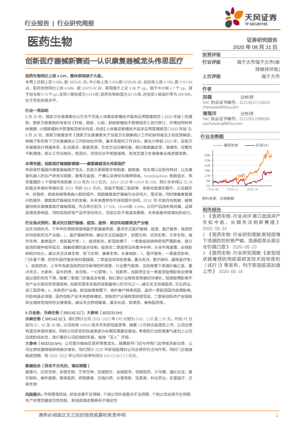 【天风证券】【20200831】创新医疗器械新赛道—认识康复器械龙头伟思医疗-26页