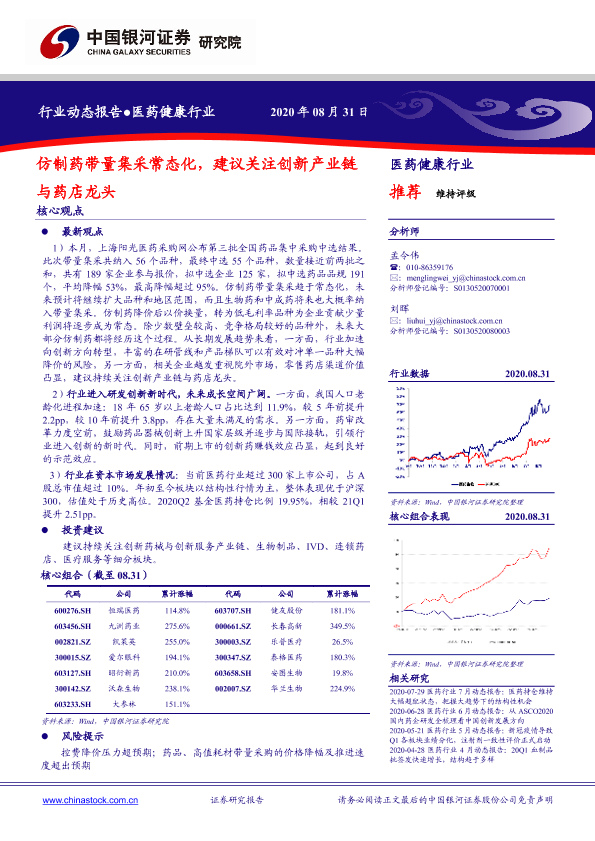 【银河证券】【20200831】仿制药带量集采常态化,建议关注创新产业链与药店龙头-57页