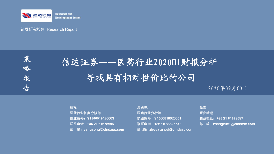 【信达证券】【20200903】医药行业2020H1财报分析:寻找具有相对性价比的公司-60页