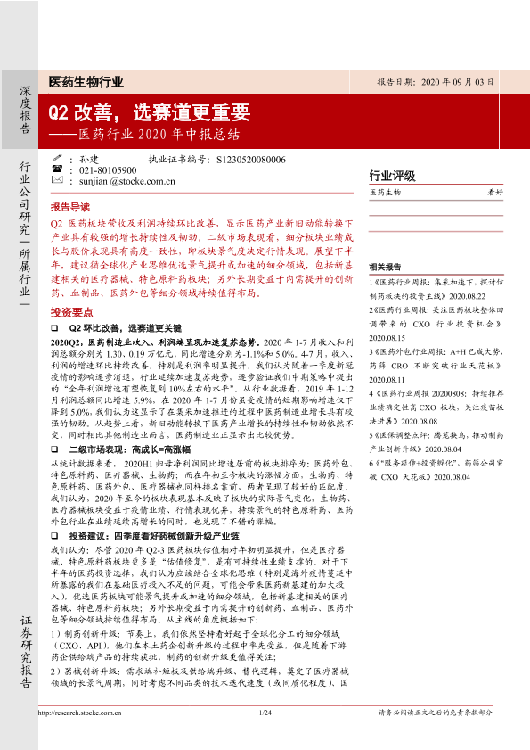 【浙商证券】【20200903】医药行业2020年中报总结:Q2改善,选赛道更重要-24页