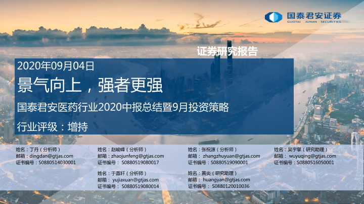 【国泰君安证券】【20200904】医药行业2020中报总结暨9月投资策略:景气向上,强者更强-39页