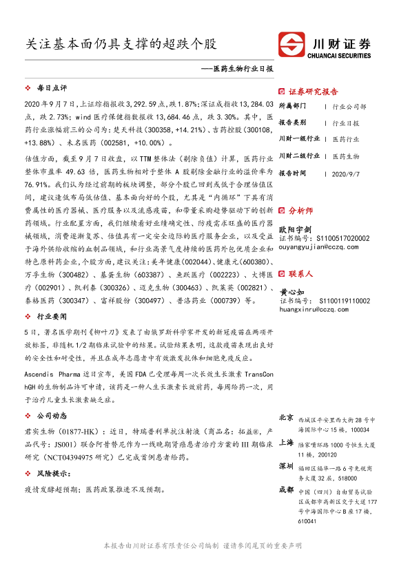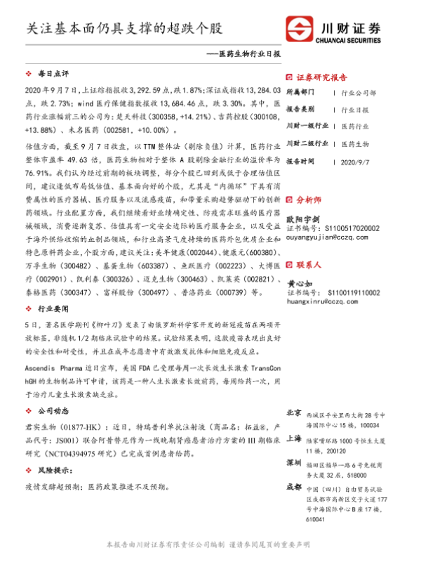 【川财证券】【20200907】医药生物行业日报:关注基本面仍具支撑的超跌个股-3页