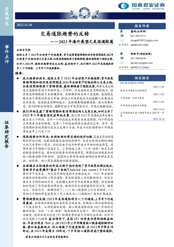【国泰君安证券】【20221110】2023年海外展望之美国通胀篇:交易通胀趋势的反转-23页