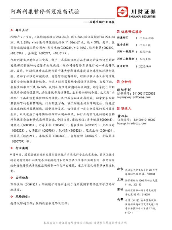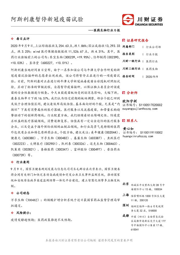 【川财证券】【20200909】阿斯利康暂停新冠疫苗试验-3页