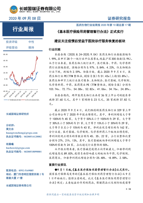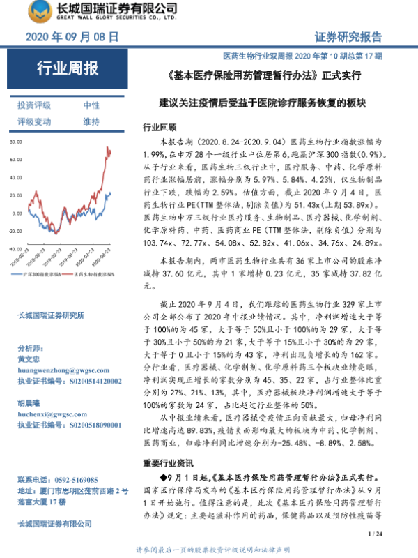 【长城国瑞证券】【20200908】医药生物行业双周报:《基本医疗保险用药管理暂行办法》正式实行-24页