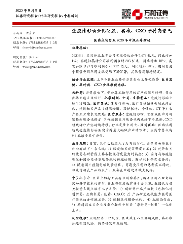 【万和证券】【20200909】医药生物行业2020年中报业绩综述-31页