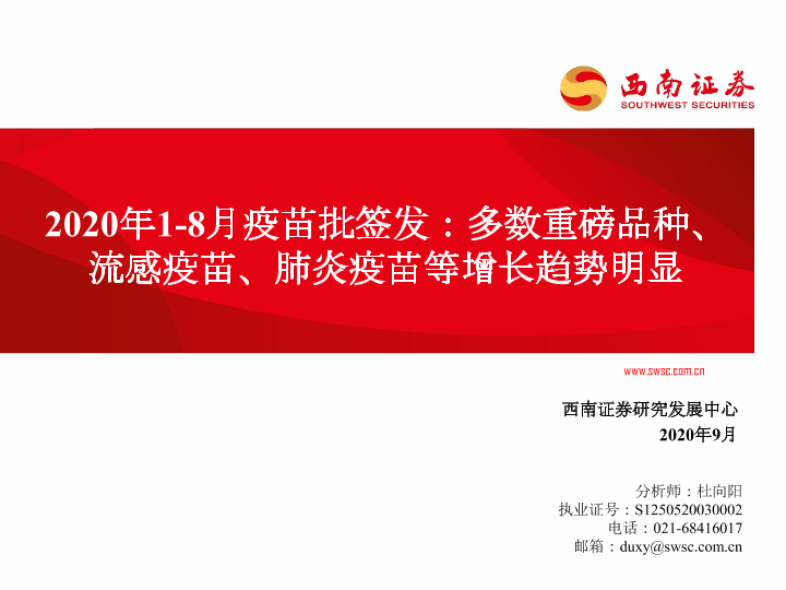 【西南证券】【202009】2020年1-8月疫苗批签发:多数重磅品种、流感疫苗、肺炎疫苗等增长趋势明显-62页