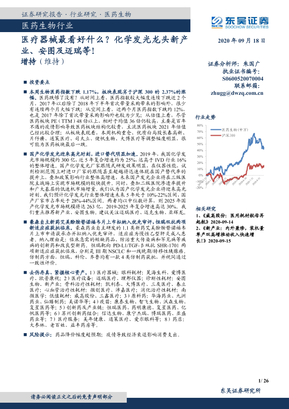 【东吴证券】【20200918】医药生物行业:医疗器械最看好什么?化学发光龙头新产业、安图及迈瑞等-26页